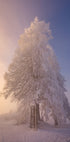 O dimineață liniștită de iarnă se desfășoară într-un peisaj scăldat în lumina aurie a dimineții. Bruma strălucește pe iarbă și ramuri, în timp ce silueta unui copac solitar iese puternic în evidență pe cerul senin. Zăpada înăbușă orice urmă, iar aerul tremură de frig și calm. Fotografia a fost creată de Judith Kuhn. Razele soarelui sparg ramurile care rime si dau motivului un calm poetic.