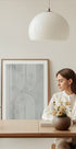 Un poster abstract minimalist cu linii curbate albe oglindite în simetrie pe un fundal texturat gri moale. Inspirată de estetica modernă de la mijlocul secolului și o paletă monocromă, opera de artă combină echilibrul și simplitatea, perfectă pentru interioarele contemporane și spațiile de inspirație scandinavă.