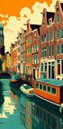 Taudalpois Amsterdam Canal Houses surprinde farmecul caselor înguste cu frontoane ale orașului de-a lungul canalului. Tonurile calde de portocaliu se reflectă în apă, în timp ce bărcile și bicicletele sugerează o mișcare calmă pe străzile istorice. Un poster de călătorie nostalgic, cu claritate grafică și senzație modernă de epocă. Perfect pentru iubitorii de Amsterdam și de poezia urbană nordică.