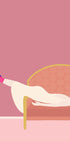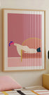 O ilustrație fermecătoare și capricioasă a unei femei întinse cu susul în jos pe o canapea de epocă, purtând modele jucăușe și tocuri colorate. Paleta îndrăzneață de culori roz și designul minimalist adaugă un simț al umorului și farmec modern, făcând din aceasta piesa de declarație perfectă pentru dormitoare, sufragerie sau spații creative.