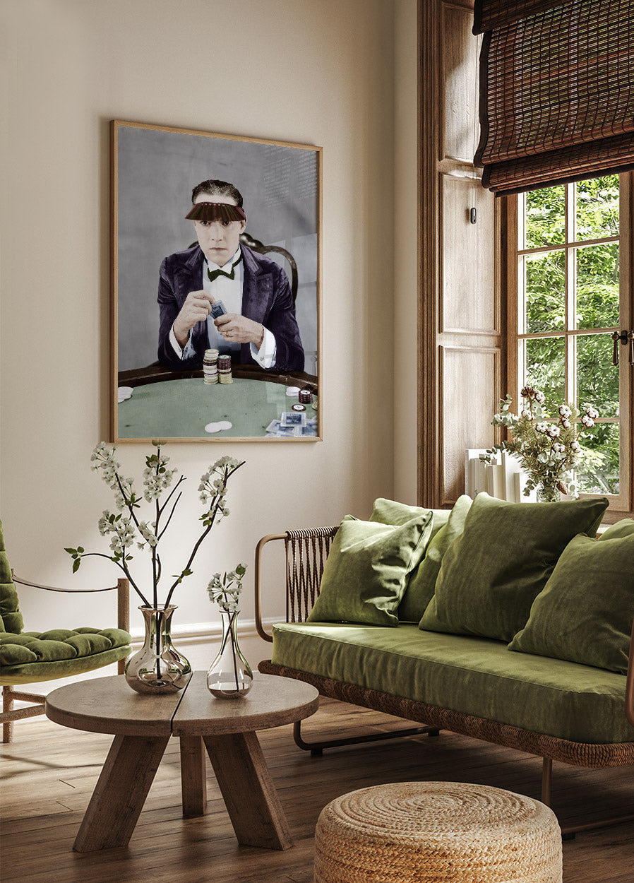 Poster vintage cu jucător la masa de cărți