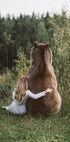 Pășește într-o pădure de basm unde o tânără se cuibărește în blana groasă a unui urs brun blând, cu ochii închiși în încredere și calm. Realizat de artista Olga Barantseva, acest portret de vis celebrează tandrețea, protecția și magia liniștită a prieteniei dintre oameni și sălbatici. Un duet tandru de curaj și grijă, perfect pentru visători și romantici.