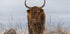 Un maiestuos Highlander scoțian stă calm într-un peisaj înzăpezit, cu blana sa lungă, maro, împrăștiată cu cremă, iar coarnele sale arcuri grafice pe orizontul alb. Paleta liniștită de iarnă și frigul cețos creează calmul nordic și poezia rurală. Fotografia este de Jaap van den Helm. Înregistrat în Veluwezoom, Țările de Jos, și ideal pentru decor nordic, rustic.