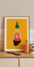 O ilustrație îndrăzneață și modernă a unei sticle de sos chili pe un fundal galben vibrant. Minimalist, dar atrăgător – această opera de artă grafică aduce o energie jucăușă pop-art bucătăriilor, sălilor de mese sau interioarelor moderne, făcând o declarație distractivă pentru pasionații de mâncare și design.