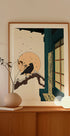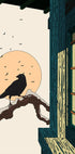 O scenă curată, minimalistă: un corb se odihnește pe o creangă în fața unei ferestre japoneze, unde peisajul de iarnă este scăldat de un răsărit moale. Panourile geometrice încadrează un cer calm cu lună și tonuri pastelate. Estetica de inspirație japoneză, cu o notă manga, creată de Nicholas, aduce liniște elegantă în casă. Și o notă de magie de iarnă.