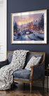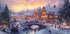 Un oraș atmosferic de Crăciun se desfășoară în zăpadă moale, unde fulgi de zăpadă fine cad peste case confortabile și pini. Oamenii se mișcă între ferestre luminoase și străzi întunecate, în timp ce pensulele conferă subiectului un farmec pitoresc, atemporal. Perfect pentru a capta căldura în strălucirea rece a iernii. Agățați-l în sufragerie pentru o atmosferă confortabilă de Crăciun.