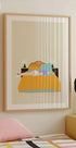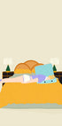 Vtipná a minimalistická ilustrácia ženy, ktorá vyčerpane leží na posteli s hlavou položenou na notebooku. Toto hravé umelecké dielo zachytáva moderný digitálny životný štýl a rovnováhu medzi odpočinkom a produktivitou, vďaka čomu je zábavným doplnkom moderných priestorov.