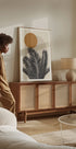 Krásna kombinácia tropickej elegancie a minimalistického abstraktného dizajnu. Tento plagát obsahuje výrazné čierne palmové listy na jemnom béžovom pozadí s vrstveným oranžovým slnkom a priehľadnou mašľou. Vyvážená kompozícia a zemité farby ho predurčujú k dekorácii v štýle boho, škandinávskom alebo Japonskom. Všestranný dizajn, ktorý prináša na stenu vašej galérie prírodu aj štruktúru.