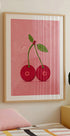 Hravá a živá ilustrácia dvoch čerešní s listami na textúrovanom ružovom pozadí. Odvážny, zábavný a farebný – tento dizajn prináša svieži závan humoru do kuchýň, jedální alebo moderných interiérov a je svojráznym vyhlásením pre každého, kto miluje umenie inšpirované ovocím.