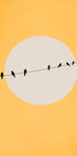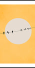 Minimalistická a štýlová ilustrácia vtákov na drôte, silueta na kruhovom pozadí s teplým žltým tónom. Toto moderné grafické dielo vyžaruje pokoj a rovnováhu a stáva sa upokojujúcim, no zároveň nápadným prvkom v moderných interiéroch.