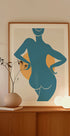 Blue Woman od Pictufy Studio II zobrazuje štylizovanú ženskú postavu zozadu, vykreslenú v sýtomodrej farbe s jemnými, grafickými líniami. Chladný tón sa stretáva s teplými žltými akcentmi v kompozícii inšpirovanej stredom storočia, ktorá vyžaruje pokoj, poéziu a modernú eleganciu – ideálna do obývačky, spálne alebo domácej kancelárie.