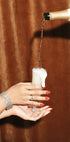 Očarujúca fotografia zátišia zobrazujúca nalievanie šampanského do pohára. Elegantné šperky, červené nechty a slávnostné detaily vytvárajú pocit oslavy, luxusu a radosti – ideálne pre nástenné umenie inšpirované párty.