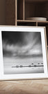 Štyri lavičky a tri dáždniky od Georga Digalakisa sú poetickou, monochromatickou meditáciou pri vode: štyri prázdne lavičky smerujú k moru podobnému zrkadlu, kým tri slnečníky rytmicky označujú horizont. Jednoduchosť, symetria a tichý odraz vytvárajú pokojnú a grafickú rovnováhu v miestnosti. Ideálne pre moderný, minimalistický dekor.