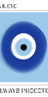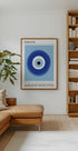 Odvážna a moderná ilustrácia tradičného symbolu zlého oka, ktorý predstavuje ochranu a odvrátenie negatívnej energie. Výrazný kruhový dizajn v modrej a bielej farbe vytvára výrazný minimalistický výraz s kultúrnym významom.