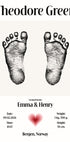 Nadčasový personalizovaný plagát bábätka s jemnými stopami novorodenca a prispôsobenými detailmi pôrodu – meno, dátum, čas, váha a výška. Toto minimalistické a emocionálne nástenné umenie je dokonalou spomienkou pre nových rodičov alebo premysleným darčekom pre bábätko alebo výzdobu detskej izby.