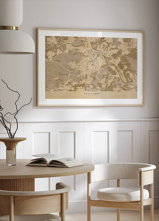 Sépiová vintage mapa centra Stuttgartu v Nemecku od Rosany Laiz Blursbyai - Papier prémiovej kvality s hladkým matným povrchom a elegantným dojmom. Matný povrch znižuje odlesky a dodáva rafinovaný, nadčasový vzhľad. Pevný a odolný pre dlhodobé používanie, ideálny pre profesionálne prostredie aj dekoratívne displeje.