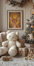 Sladký a dobrodružný portrét soba s trblietavou svetelnou reťazou na parožiach a teplým zlatým pozadím. Jemná ilustrácia a priateľský úsmev robia motív útulným a hravým. Ideálne na vianočné dekorácie v domácnostiach, ktoré chcú na stene trochu zimného kúzla.