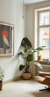 Vintage Owl od Nicholasa zachytáva poéziu noci: bdelá sova so žiariacimi očami odpočíva medzi štíhlymi brezami, keď v mesačnom svetle padajú snehové vločky. Geometrické tvary a jednoduchá perokresba dodávajú motívu retro, minimalistický výraz, z ktorého dýcha severský pokoj a zimná mágia. Štylizovaná nočná obloha dodáva hĺbku a vintage farebná paleta vytvára pokoj.