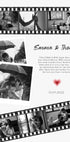 Moderná a romantická fotografická koláž pre páry. Rozloženie kombinuje filmový pás so šikmými obrázkami inšpirovanými polaroidmi, jemnými detailmi srdca a elegantnou typografiou. Prispôsobte si svoje vlastné fotografie, mená a špeciálny dátum, aby ste si vytvorili nadčasovú spomienku na výročie, svadbu alebo Valentína. Čiernobiely výraz dodáva klasický, štýlový vzhľad, v ktorom sú spomienky v centre pozornosti.